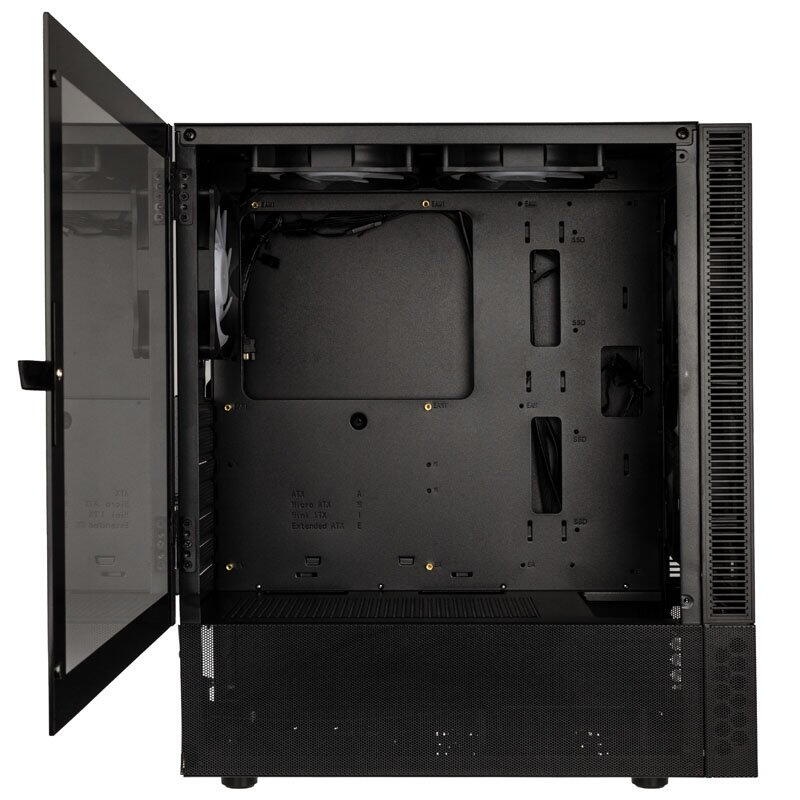 Tip: MiddleTower; Placi de baza compatibile: ATX||Micro ATX||Mini ITX; Sursa inclusa: Nu; Pozitionare sursa: Jos; Lungime max. PSU: 180; Format: ATX; Iluminare LED: RGB; USB 2.0: 1; USB 3.0: 2; 3.5mm jack: 1; Bay intern 3.5”: 2; Bay intern 2.5”: 2; Culoare: Negru; Sloturi expansiune: 7; Inaltime max. cooler CPU: 160; Lungime max. video GPU: 330; Dimensiuni: 20 x 44 x 35; Greutate: 5.6; Fata: 2 x 120mm / 140mm; Spate: 1 x 120mm; Sus: 2 x 120mm; Ventilatoare incluse: 5; Fata: 240 / 280 / 360; Spate: 120;